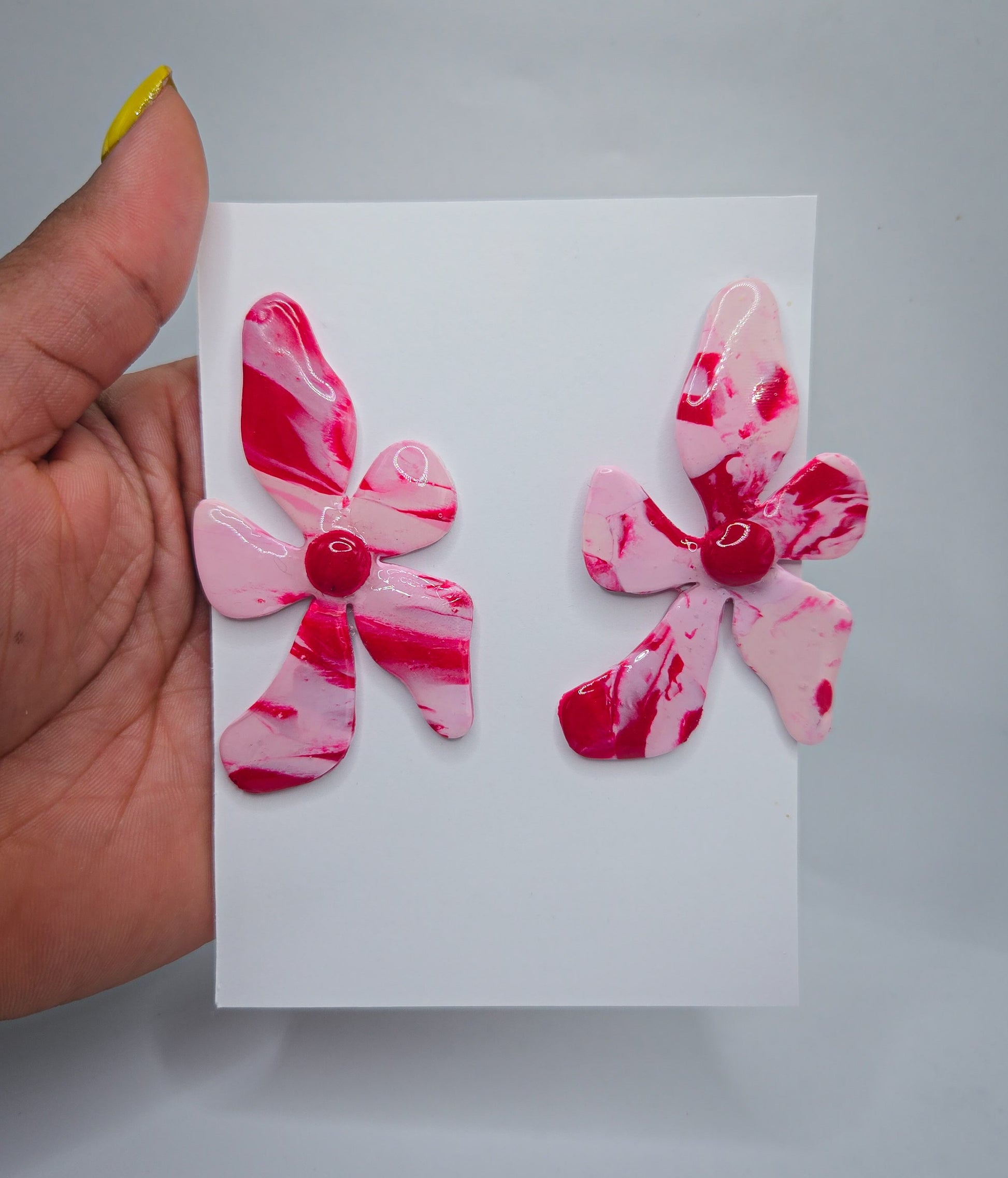 Red and pink statement earrings